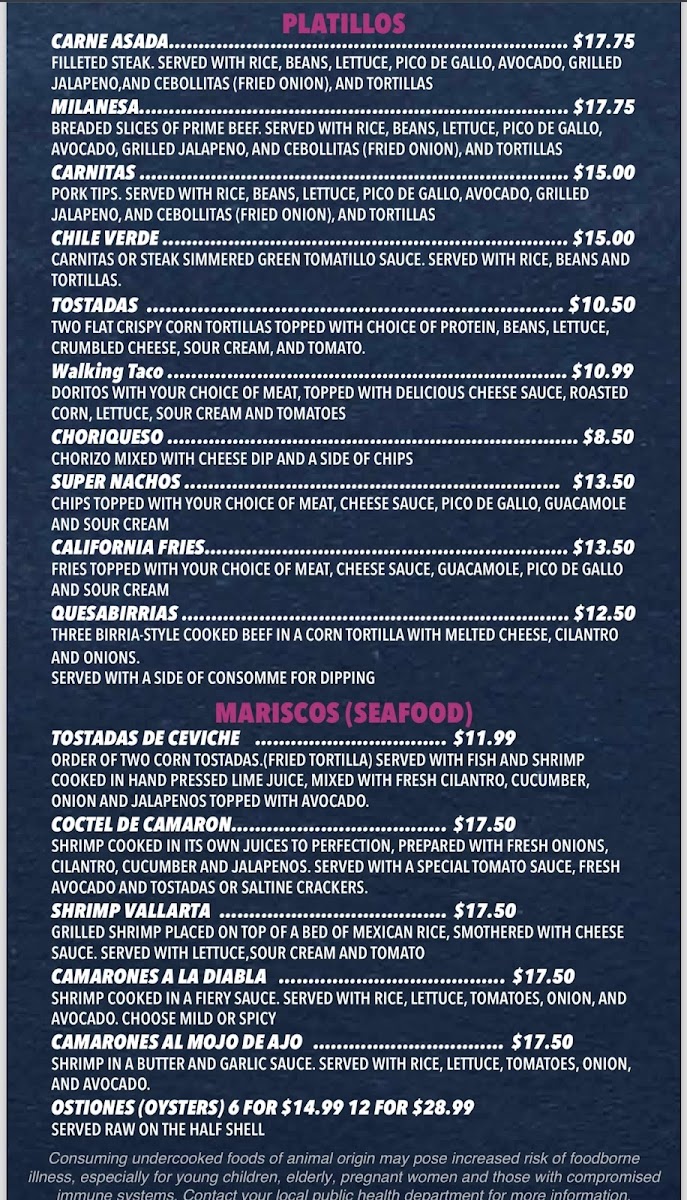 Shrimp cooked with lime juice only. Mixed with spices, fresh cilantro, cucumber, onions and jalapeños. Topped with avocado. Served with three tostadas on the side. THIS IS A COLD DISH