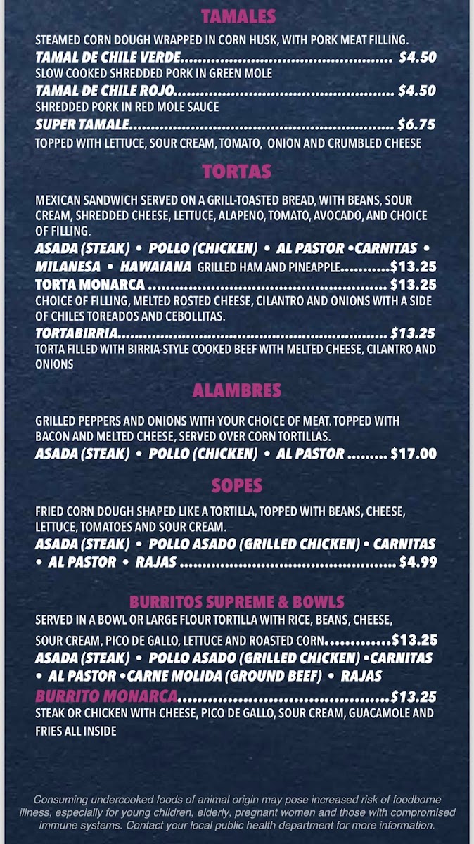 Choice of filling, melted roasted cheese, cilantro and onions with a side of chiles toreados and cebollitas.