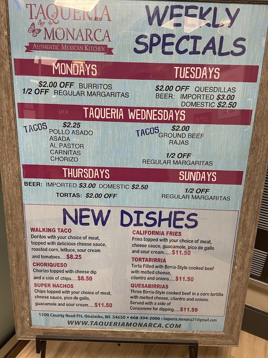 Topped with lettuce, sour cream, tomato, onion and crumbled cheese.